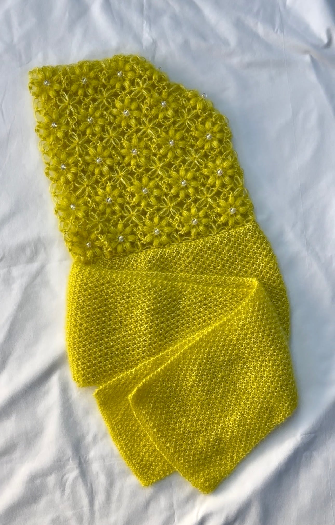 異なる編み地の表情を一つの作品に落とし込みました。