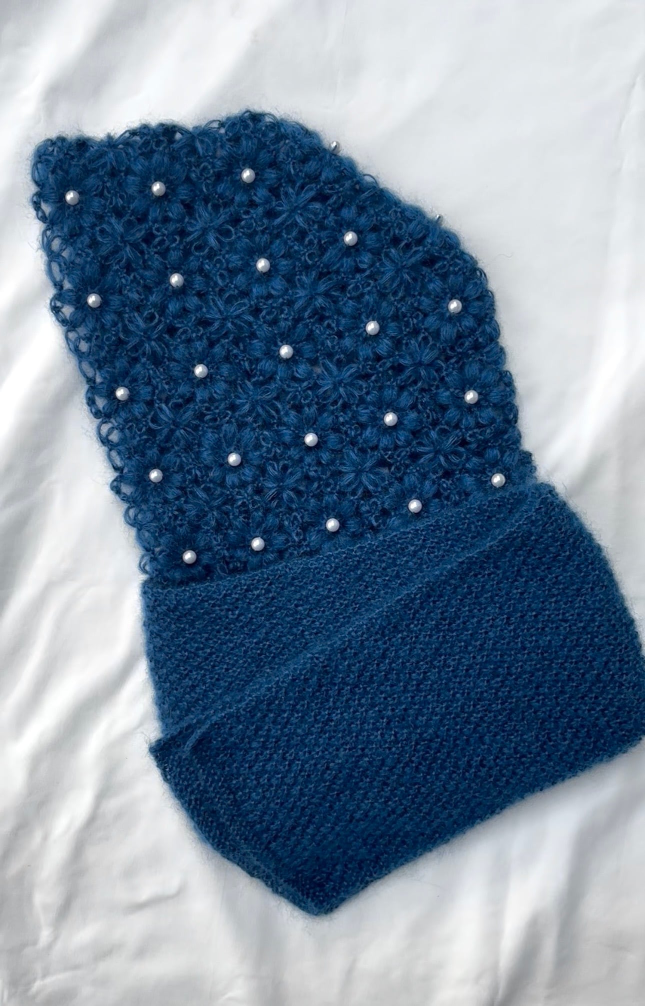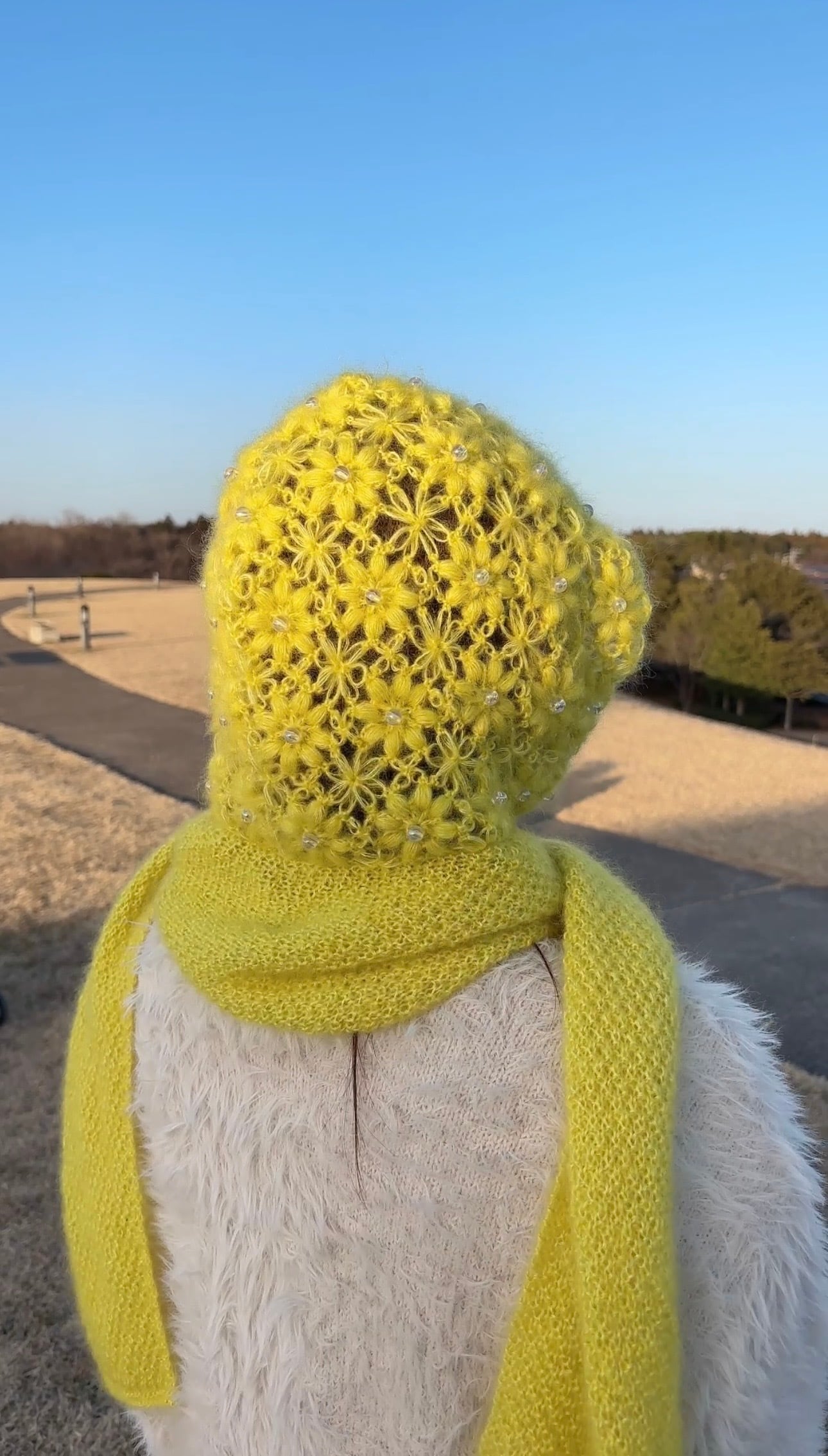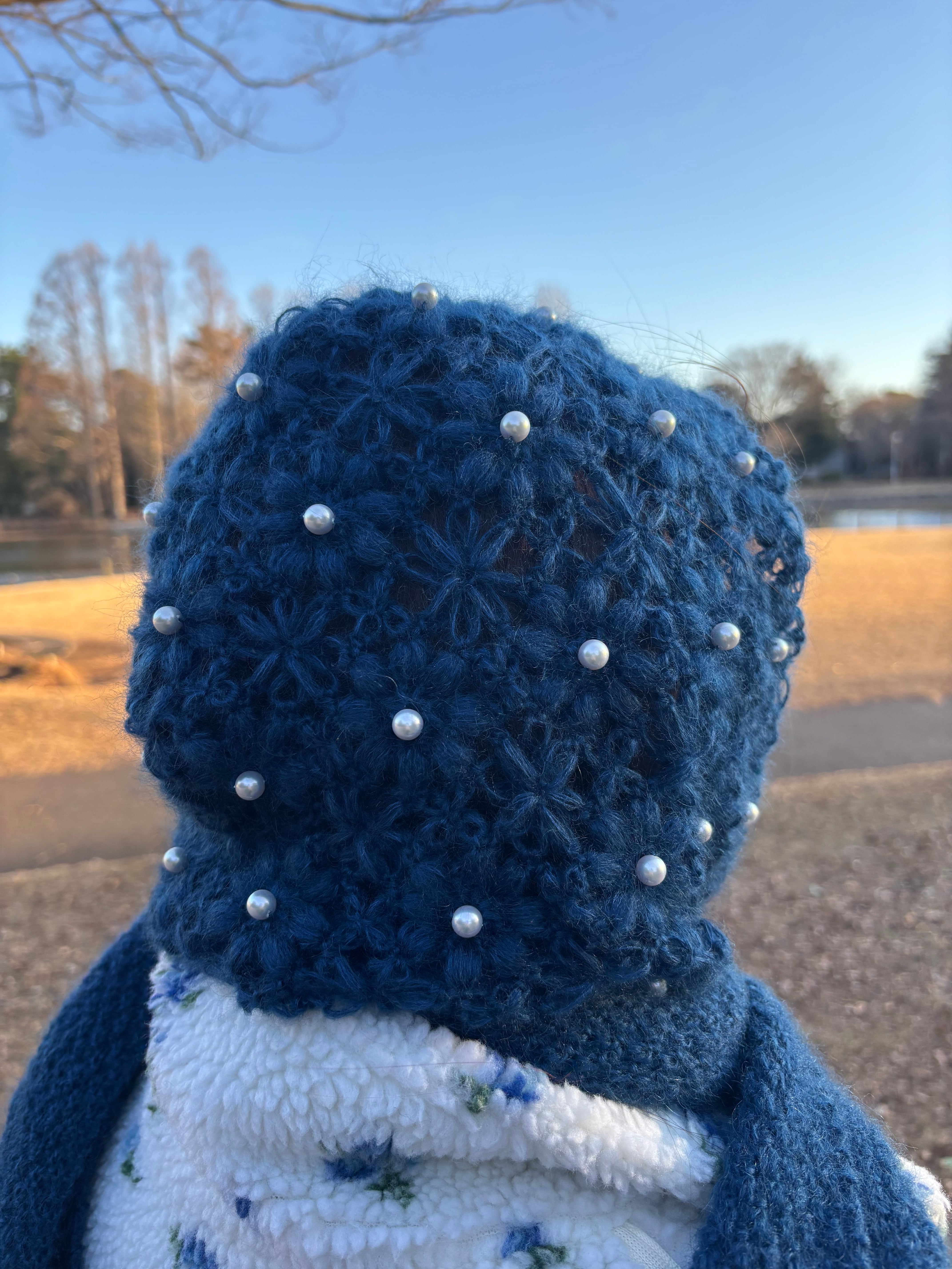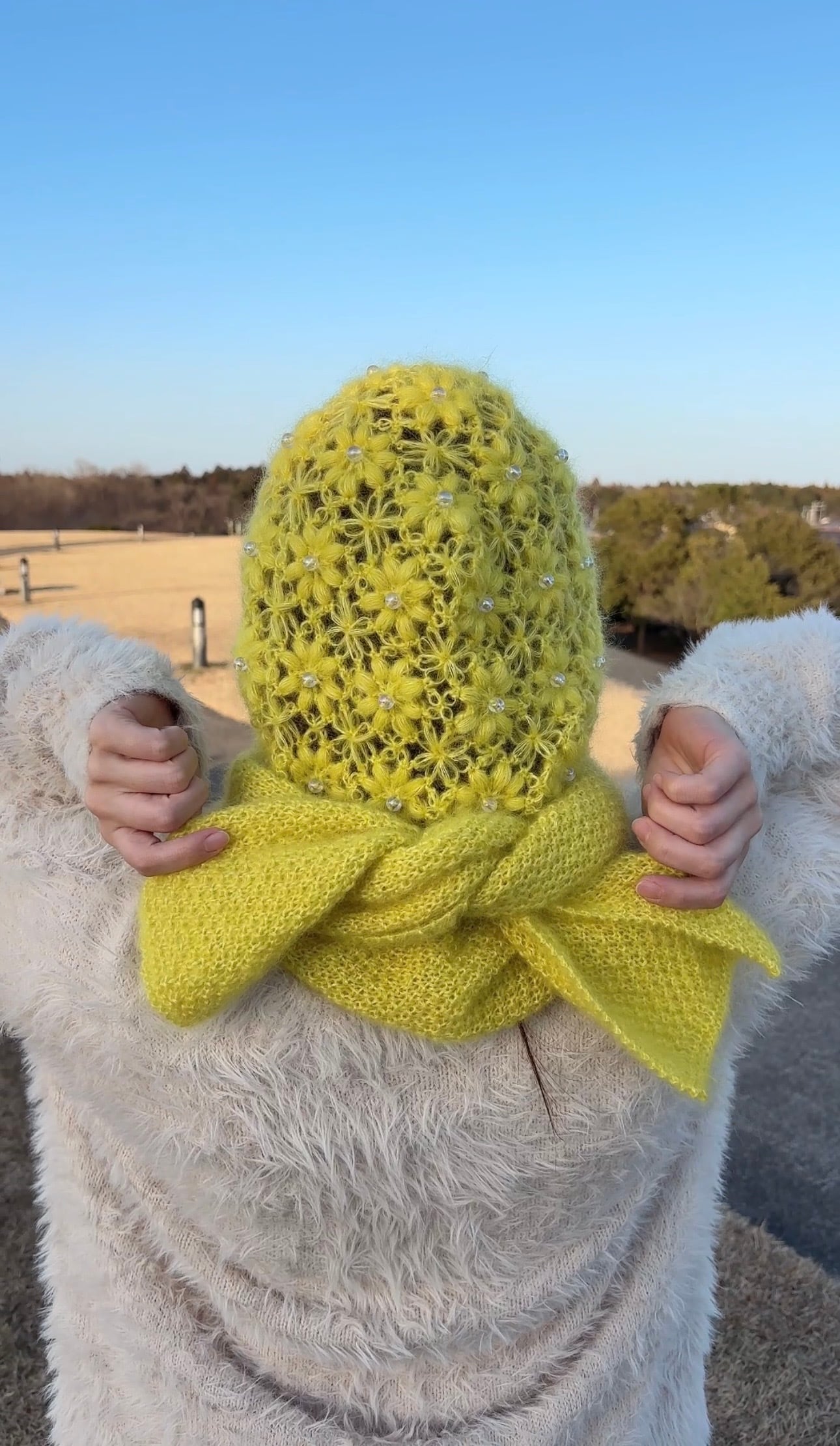 フード部分はかぎ針編み、