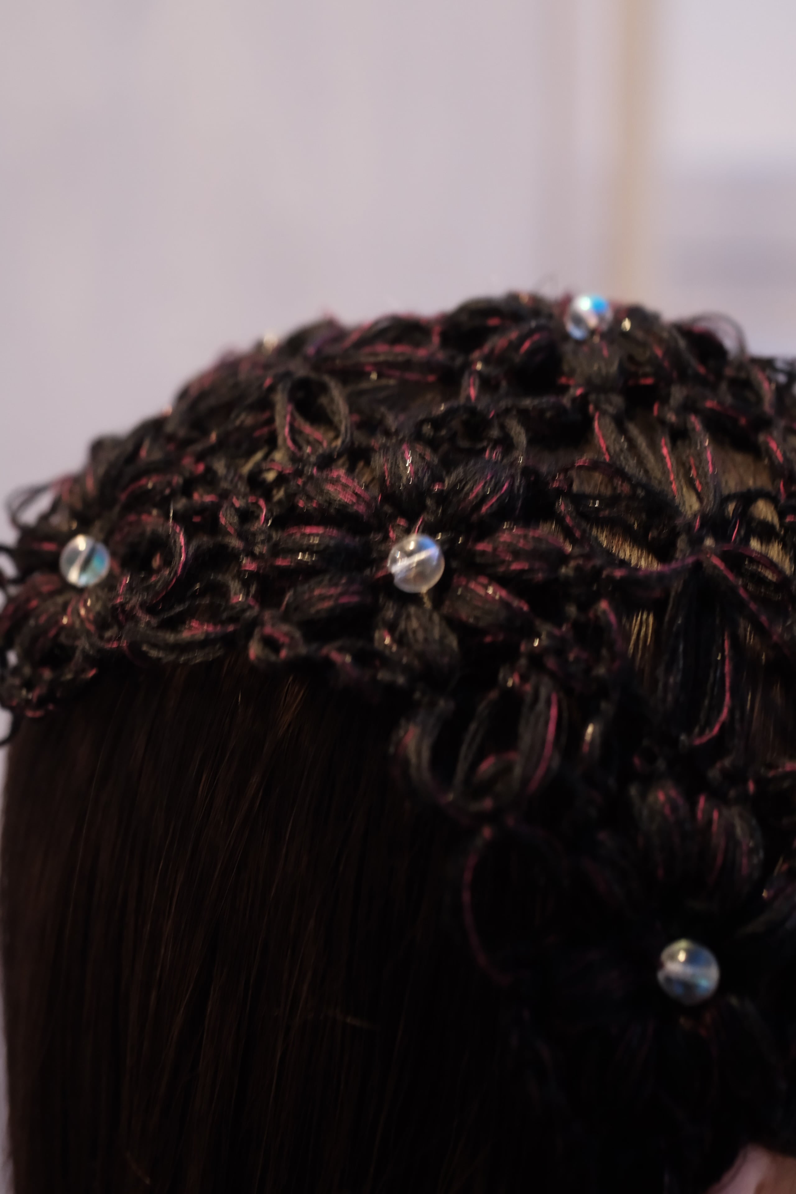 黒にチラチラと見えるピンクと赤が